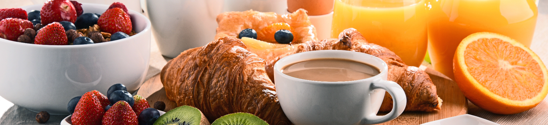 Nuestro desayuno se sirve en una sala luminosa en la planta baja, con vistas al jardín del patio y sus parterres de flores. El buffet incluye una amplia variedad de productos orgánicos y locales, entre ellos:
